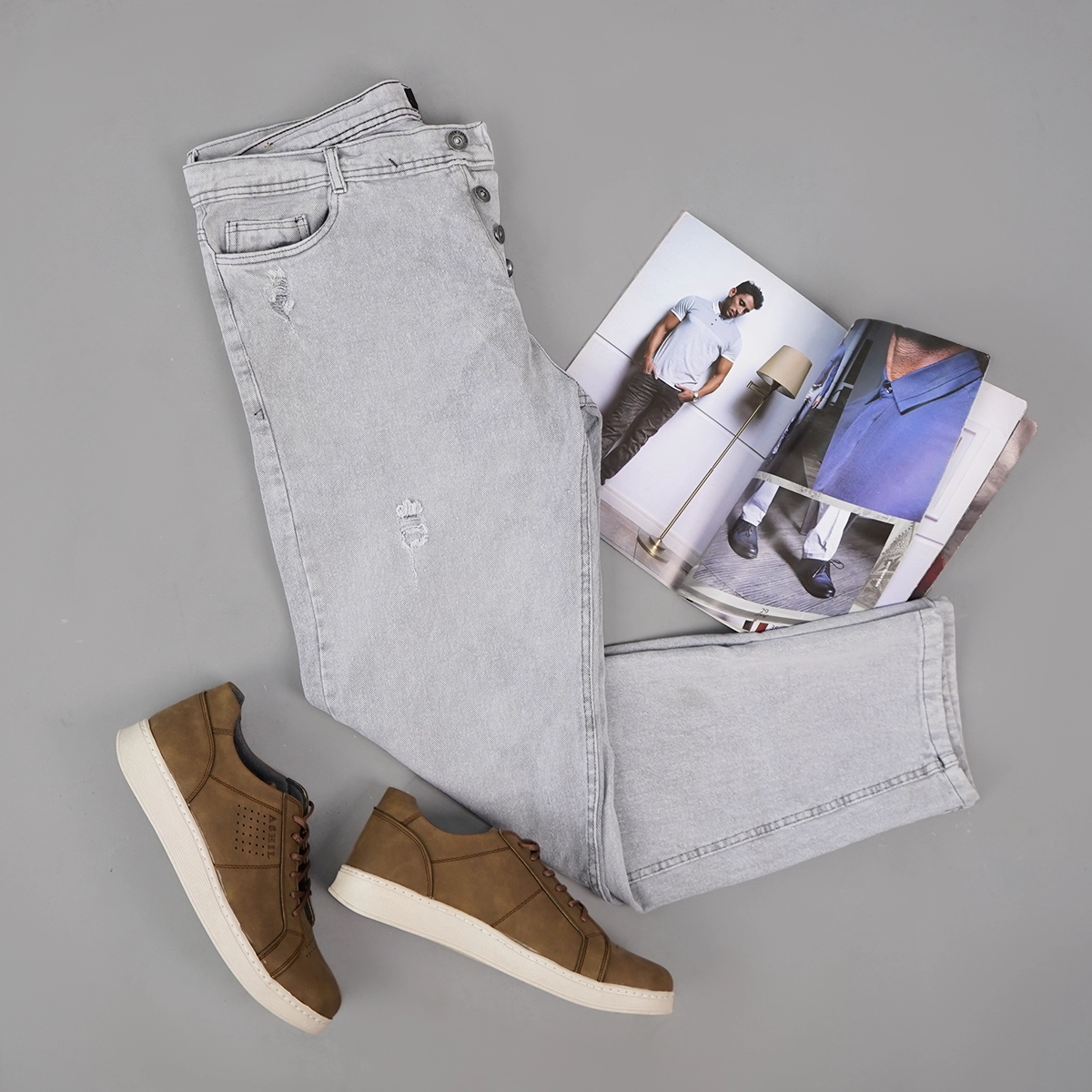 شلوار جین مام استایل طوسی روشن مردانه مدل Barad