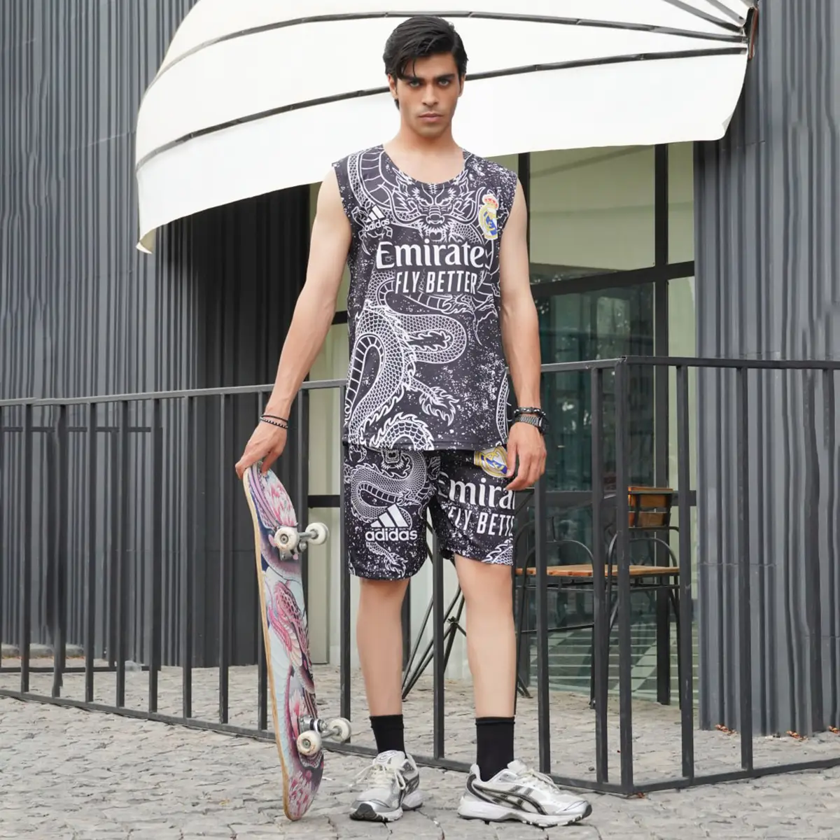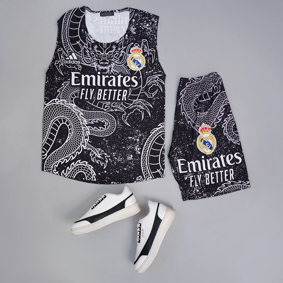 ست رکابی شلوارک مردانه مشکی طرح اژدها